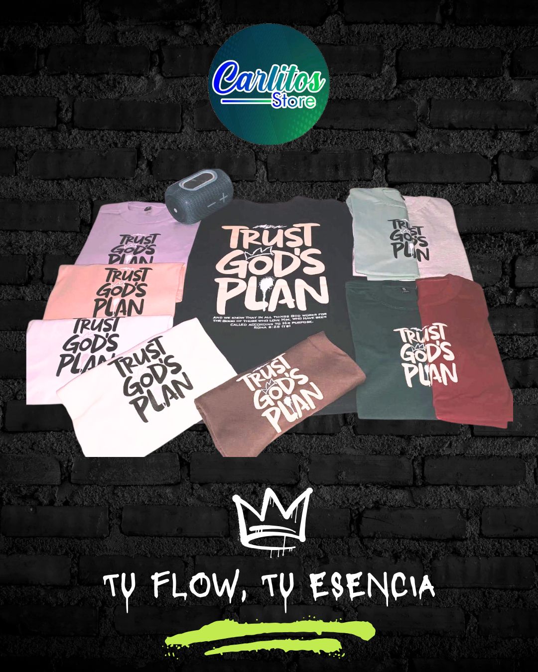 Remeras Oversize diseño "Trust God's Plan" en diferentes colores y tamaños desde P hasta XL.